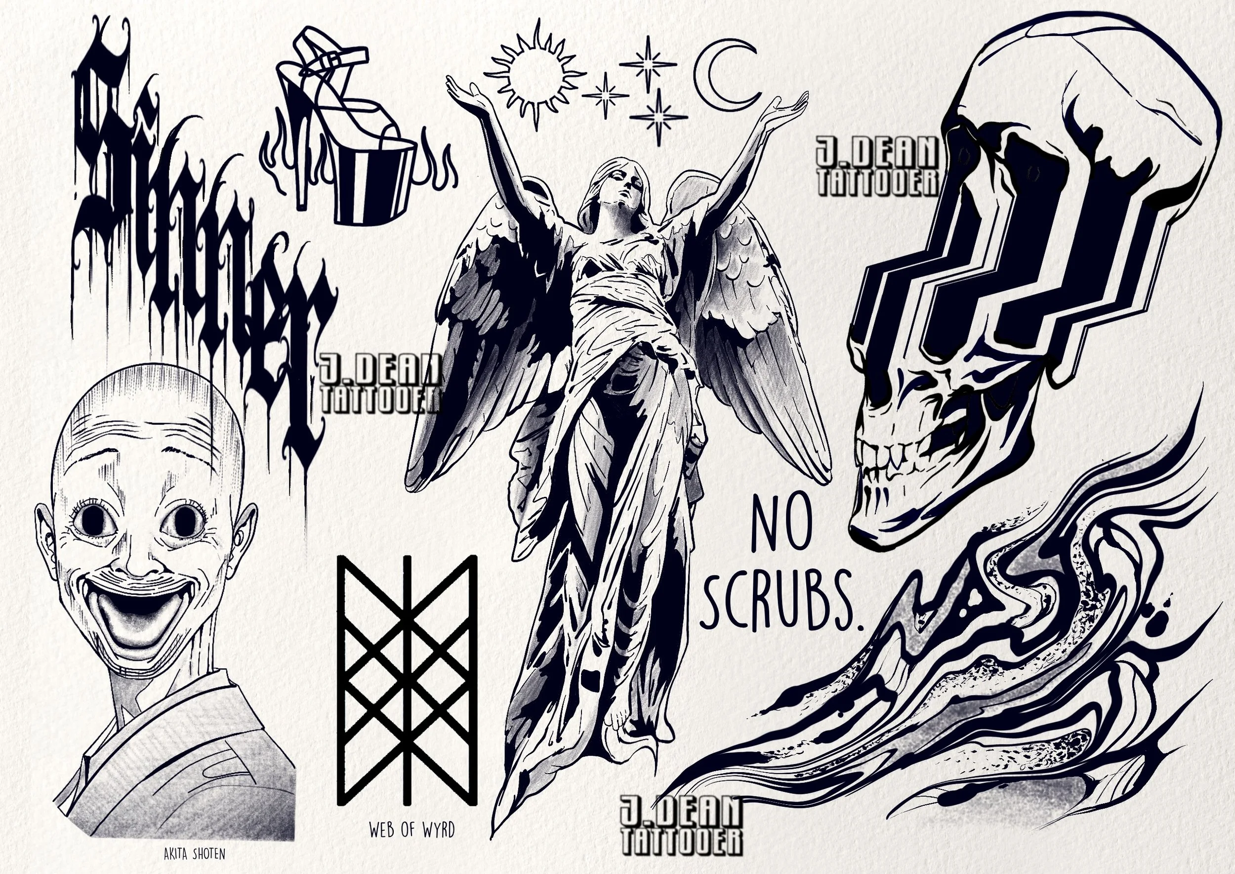 With over a decade of experience, in busy street shops and private studios, I am always happy to take on new projects within my graphic/illustrative blackwork style. I’ve worked with bands and brands to brewery’s, so no job is too big. I’m currently based at Sunset Tattoo NZ of the finest tattoos in the South Pacific.